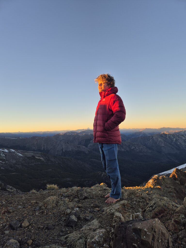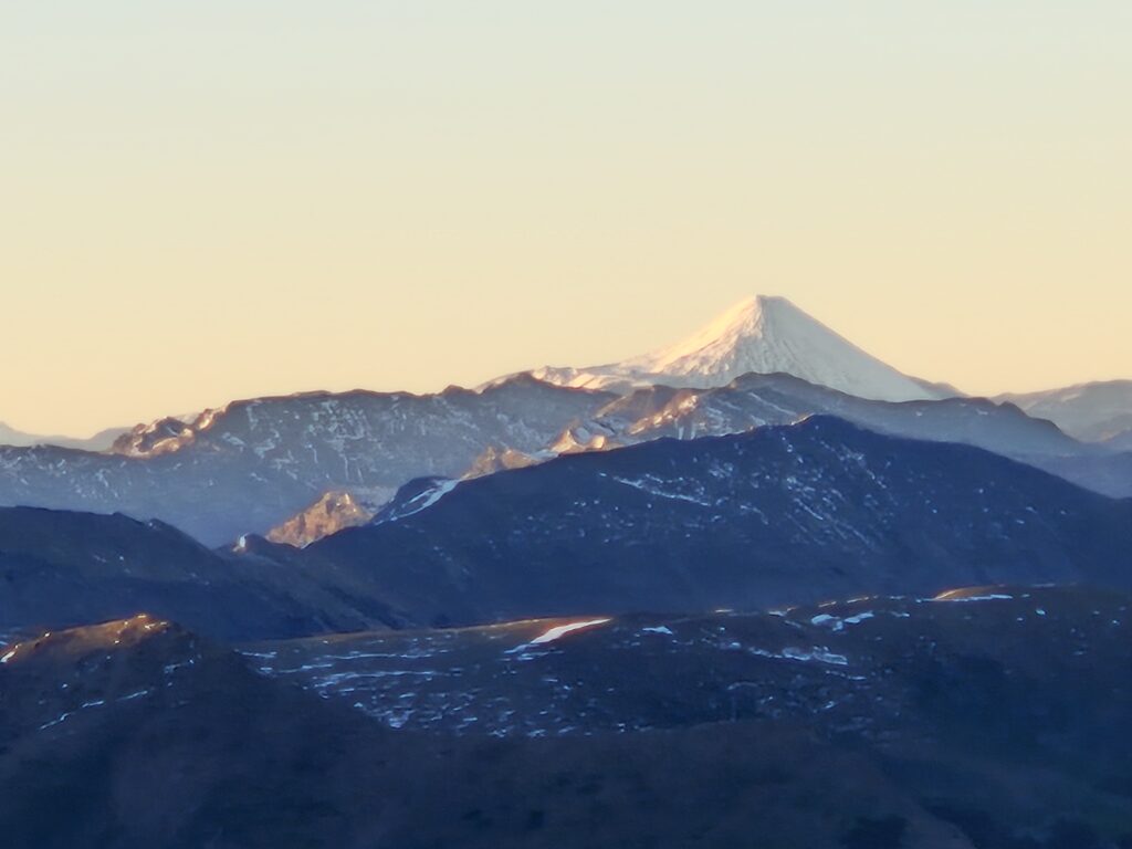Ich mummele mich in alles, was ich habe und krieche in den Daunensack. Sascha ist wesentlich kälteresistenter als ich und bereitet das Abendessen alleine zu.Freiwillig wäre ich hier nie geblieben. Aber es ist muy impressionante. Der Sonnenuntergang, die leuchtenden schneebedeckten Vulkane, die aufziehende Milchstrasse und der zunehmende Mond sind großartig. Mein Schlafsack hält trotz dem kalten Wind warm und so ziehe ich in der Nacht nach und nach Regenjacke, Daunenjacke, Socken und Thermohose aus und bin immer noch warm.Sascha ist tiefenentspannt, während dies für mich eine neue und existenzielle Erfahrung ist.