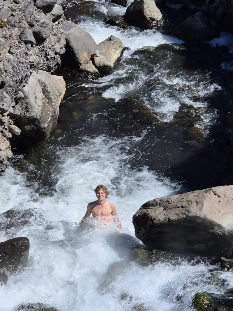 Wir lassen uns direkt am Zusammenfluss nieder und genießen die wilden Whirlpools, mal kalt, mal heiss und alles dazwischen.